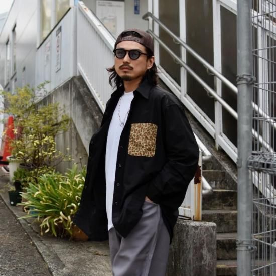 バーラップ アウトフィッター ( BURLAP OUTFITTER ) ENCINITAS別注 L/S B.B. SHIRT / ナイロンシャツ BLACK LEOPARD - エンシニータス