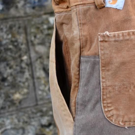 古着のダックキャンバス生地を解体し、ブランド独自のパターンで