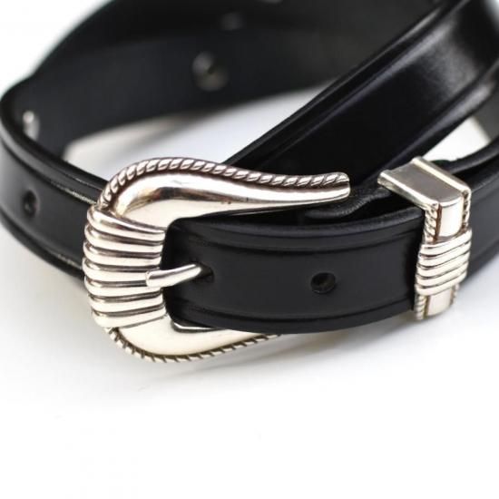ウエスタンデザインのシルバーのバックルが特徴的な