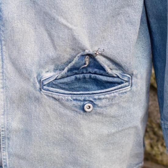 クロ ( KURO ) DENIM HALF COAT / デニム ワーク コート LIGHT INDIGO - エンシニータス