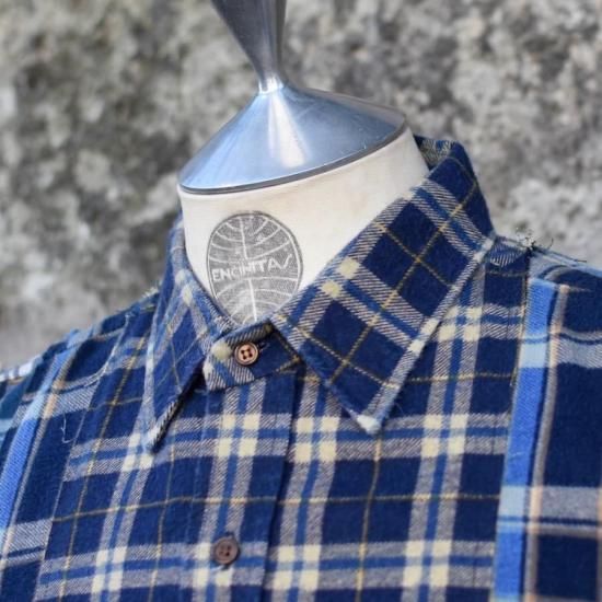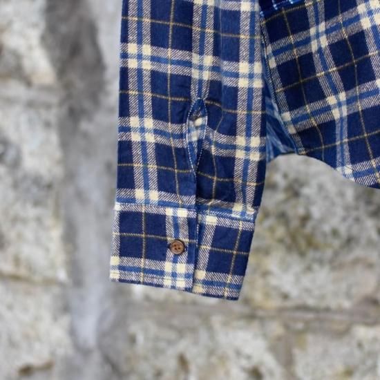 オッドメント ( oddment ) CUSTOM REGULAR COLLAR NEL SHIRTS / カスタム レギュラーカラー ネルシャツ BLUE TYPE1 - エンシニータス