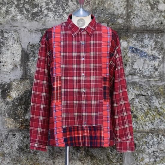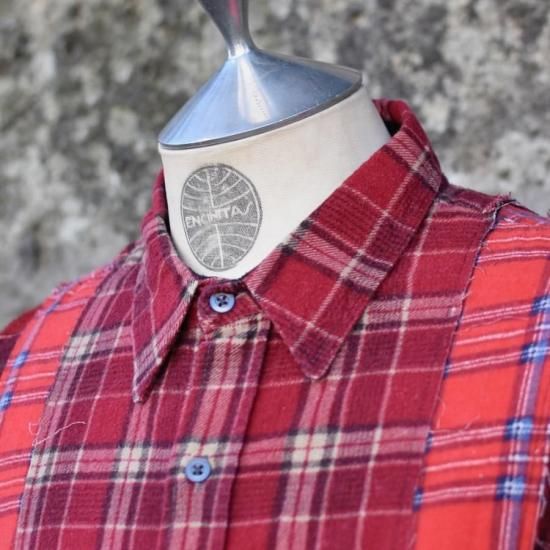オッドメント ( oddment ) CUSTOM REGULAR COLLAR NEL SHIRTS / カスタム レギュラーカラー ネルシャツ RED TYPE1 メンズ レディース - エンシニータス